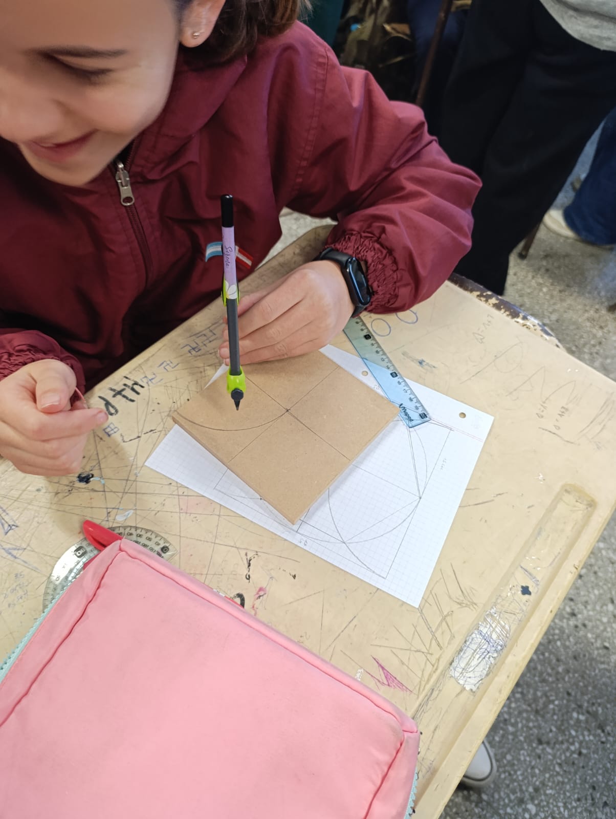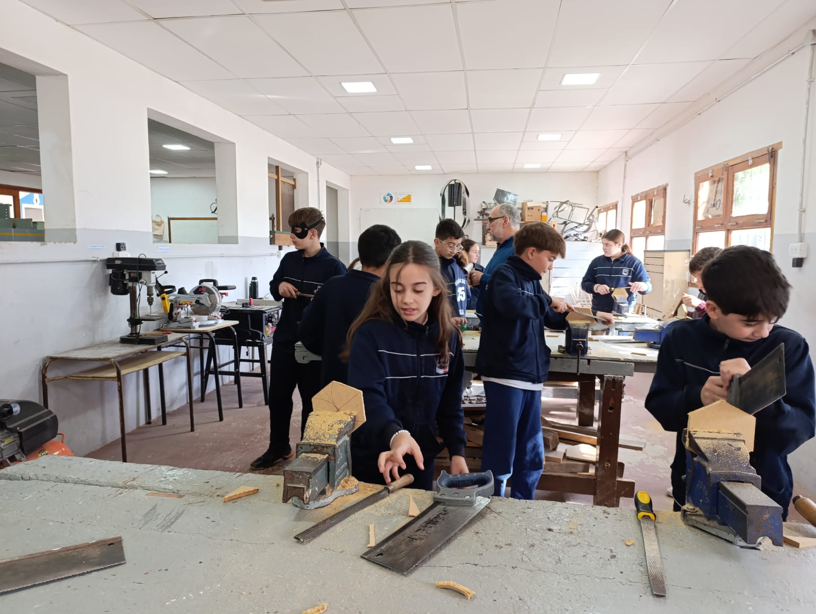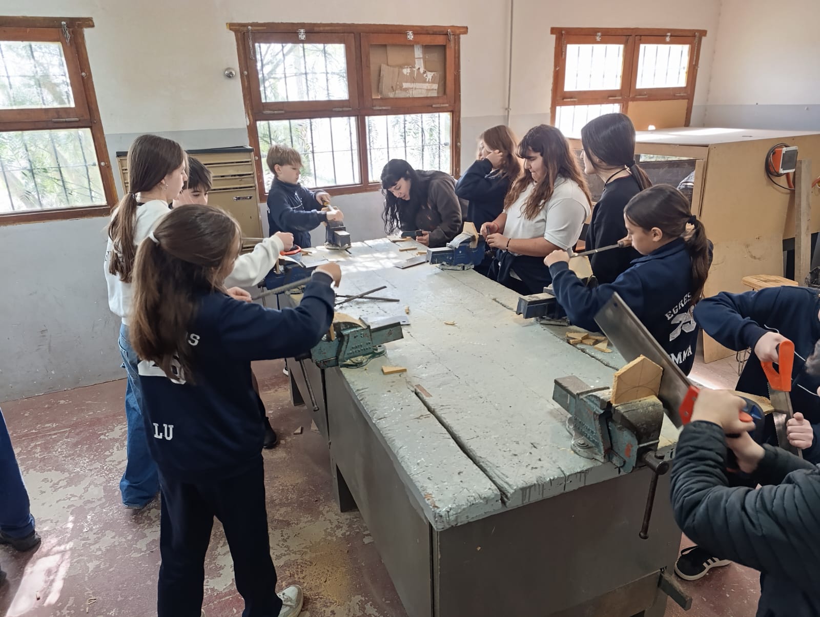 Durante la jornada, trabajaron con entusiasmo en actividades de dibujo técnico, carpintería y electricidad, poniendo en práctica conocimientos matemáticos en contextos reales y colaborativos.