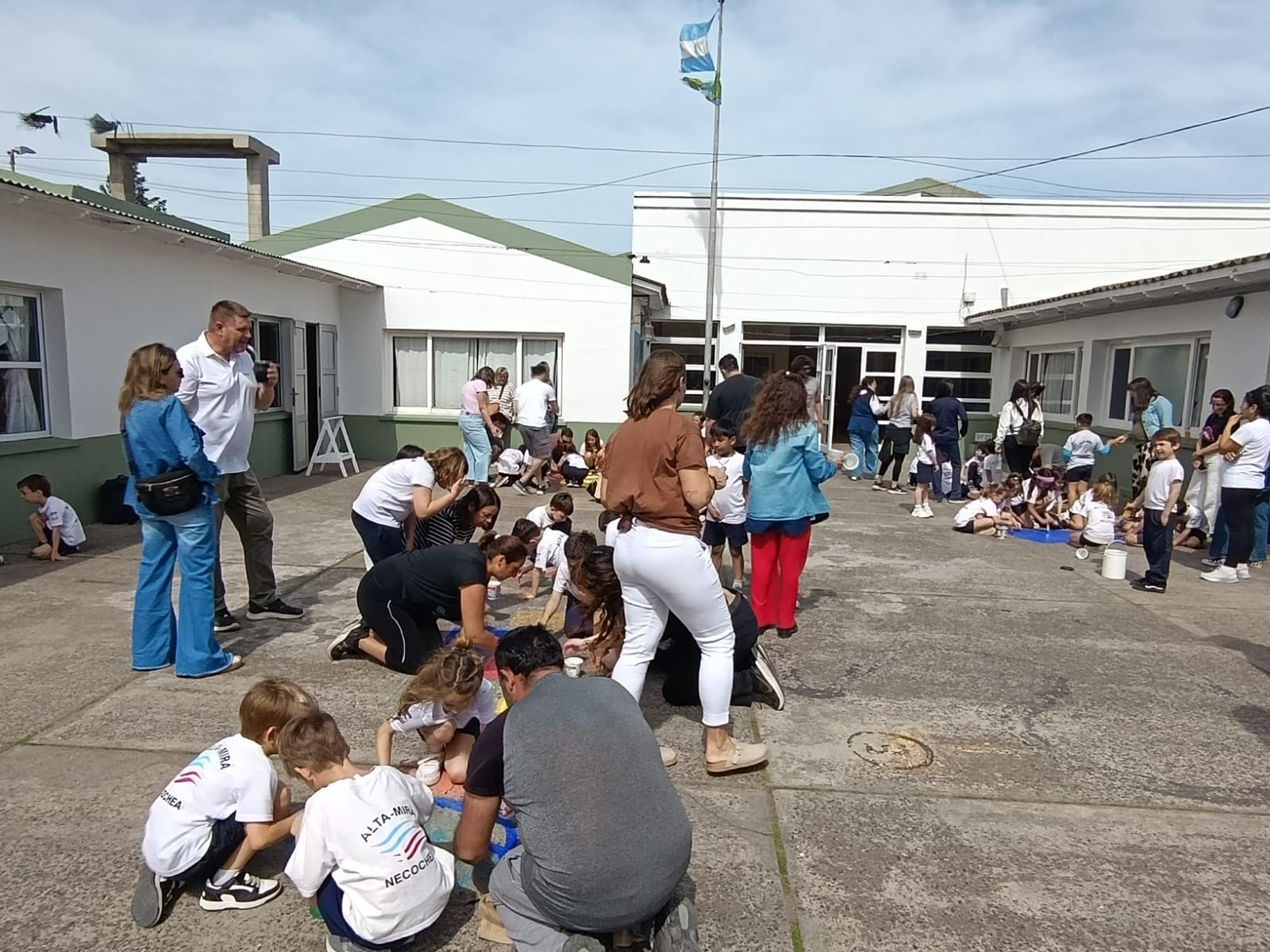 Desde temprano, el turno mañana compartió un acto conmemorativo a las 10:30 h, donde se expresaron emociones, recuerdos y valores que nos acompañan desde hace décadas. Por la tarde, a las 13:30 h, el turno tarde sumó su voz a esta celebración, y además, como regalo a nuestra ciudad, se llevó adelante una campaña de embellecimiento del patio escolar.