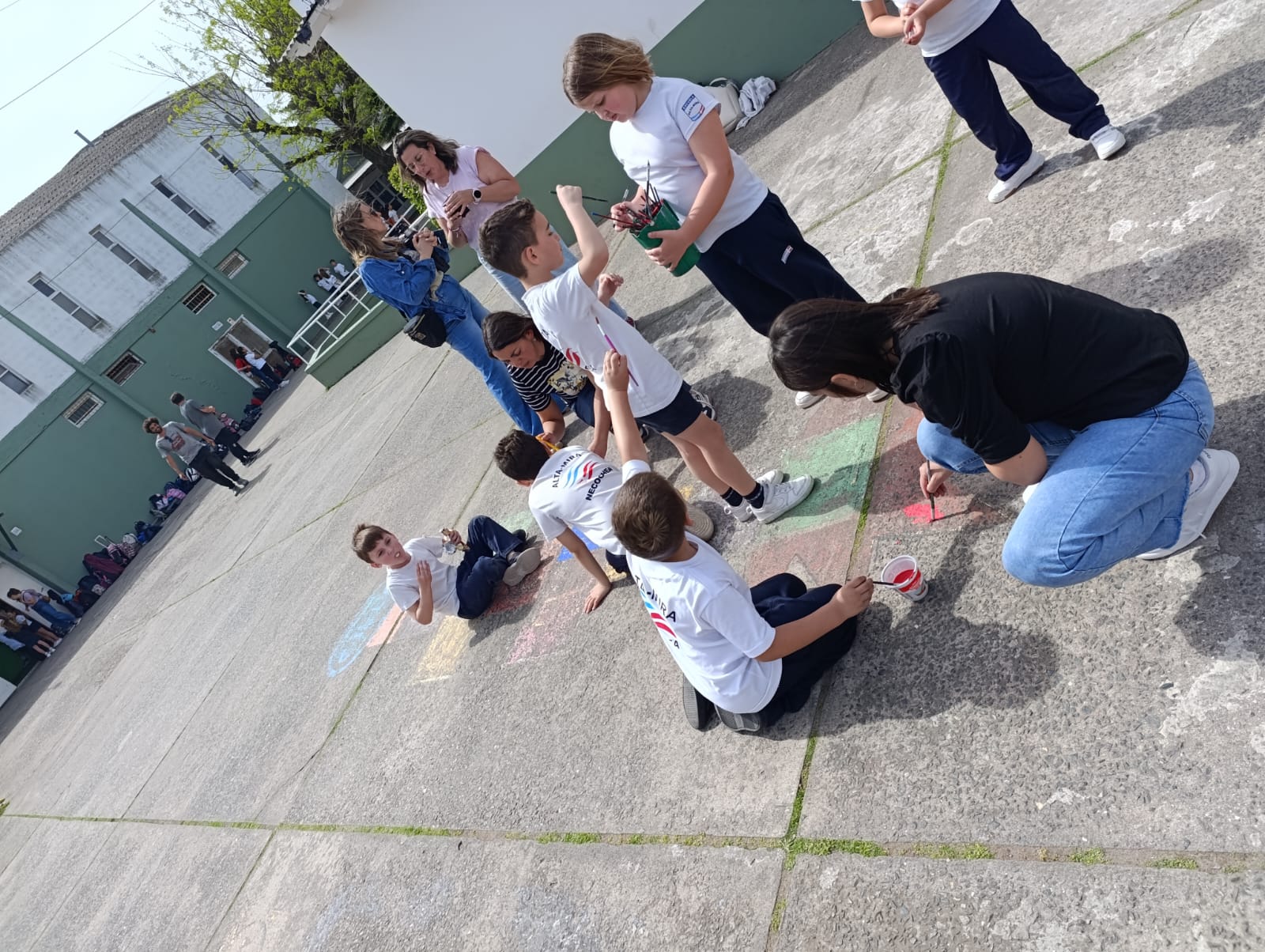 👨👩👧👦 Las familias de 2°A participaron activamente, repintando juegos tradicionales como la rayuela, el TA-TE-TI y otros espacios lúdicos que forman parte de nuestra identidad cotidiana.