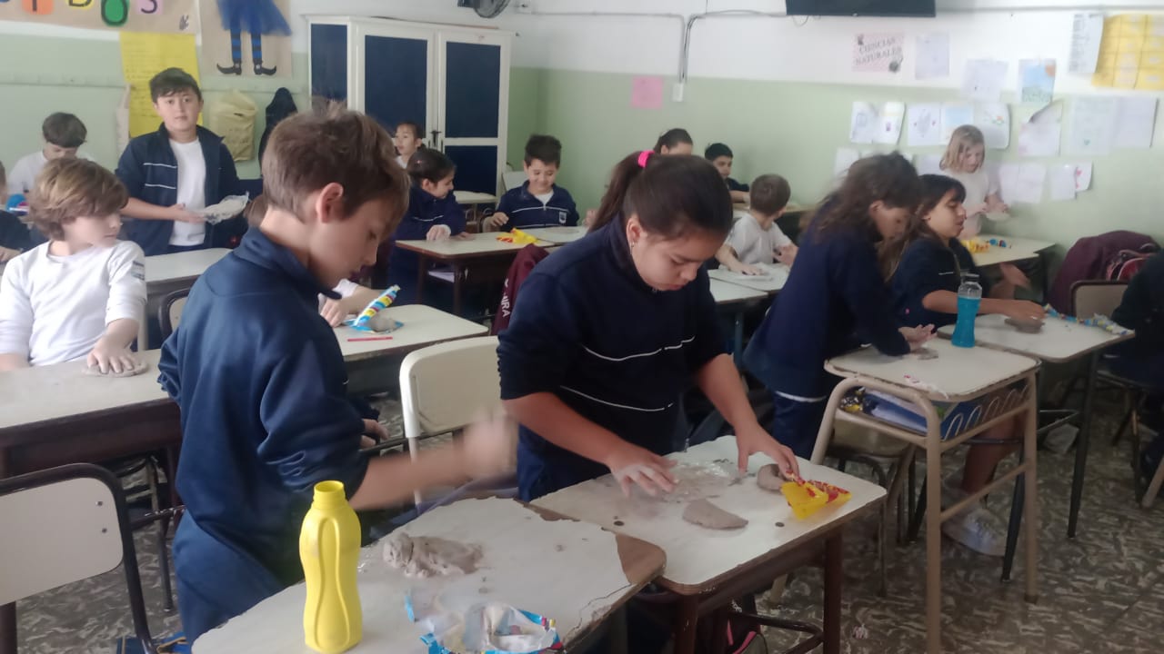 En el marco del trabajo sobre fósiles y rocas de Ciencias Naturales, los alumnos de 4°A y 4°B se convirtieron en pequeños paleontólogos.