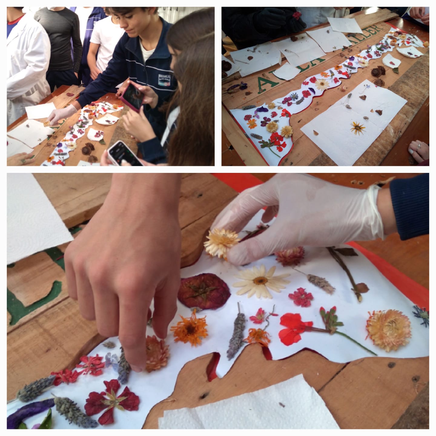 Se propusieron varias ideas y se eligió un proyecto ambicioso utilizando resina epoxi y flores incrustadas, un material con el cual no teníamos experiencia. Así que investigamos cada proceso de trabajo y nos pusimos manos a la obra!