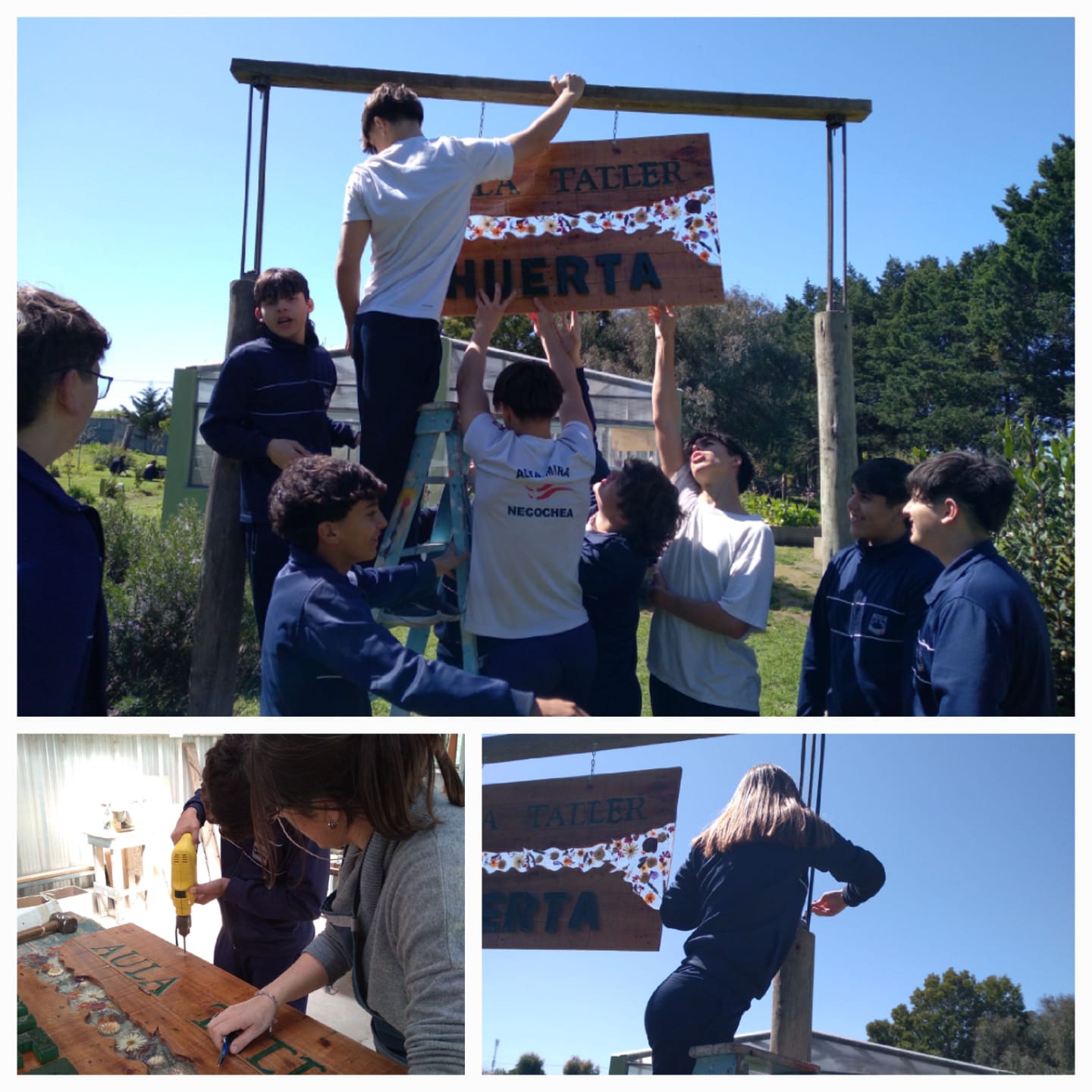 El cartel se colgó en el pórtico de entrada de la Huerta. La jornada de colocación del mismo se hizo conjuntamente con el taller de Laboratorio, cocinando empanadas en el horno de barro y compartiendo este festejo con el taller de Huerta. Felices y orgullosos del trabajo realizado!! Autores y realizadores: Alumnos de 4to Naturales 2025